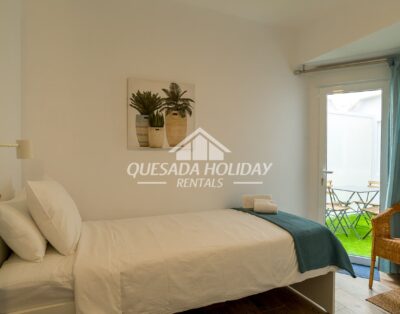 The apartment is only 600 metres from Playa del Cura and 900 metres from Playa de Los Locos, two of the most popular sandy beaches in the area. With air conditioning throughout and a bathroom with an accessible walk-in shower, it’s a comfortable choice for guests of all ages, including older visitors.